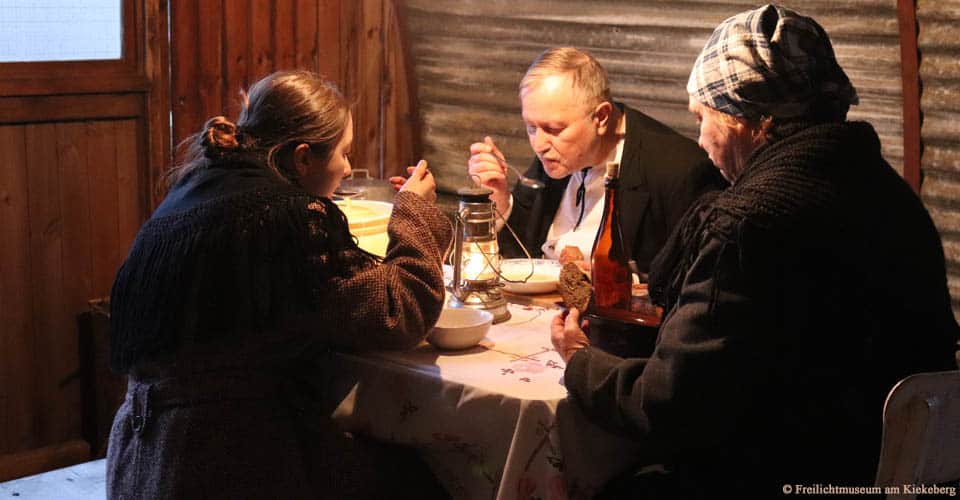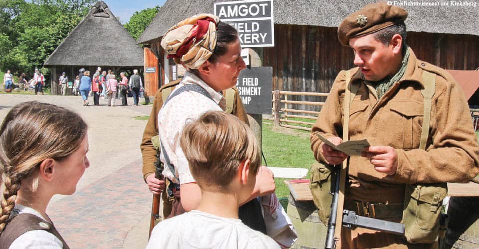 „Unsere große Stärke ist: Wir zeigen, was nicht im Geschichtsbuch steht“, erläutert Museumsdirektor Stefan Zimmermann. „Wir blicken auf den Alltag der Bevölkerung auf dem Land. So wird Geschichte begreifbar und unsere Besucher können sich die Vergangenheit besser vorstellen.“ Das funktioniert sehr gut bei den regelmäßigen Darstellungen der Gelebten Geschichte am Kiekeberg, die um 1804 und 1904 spielen. „Im vergangenen Jahr haben wir bereits ein Wochenende den Sommer 1945 dargestellt. Wir sind sehr beeindruckt von der Professionalität der Darsteller, die historisch hundertprozentig korrekt sind. Und unsere Besucher erleben das ebenso: Es gab Personen aus der Erlebnisgeneration, die bestätigten, dass sie als Kind genau diese Erfahrungen gemacht haben“, erinnert sich Stefan Zimmermann. „Es war bewegend und erhellend zugleich. Ein unerwarteter Nebeneffekt: Unsere Besucher kamen über Generationen hinweg ins Gespräch. So funktionieren Geschichtsvermittlung und Begegnungen zwischen den Generationen.“