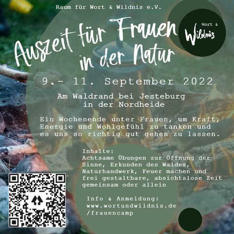 Ein Wochenende unter Frauen, in der Natur, um Kraft, Energie und Wohlgefühl zu tanken und es uns richtig gut gehen zu lassen. Der Tagesablauf beinhaltet sowohl gemeinsame Aktivitäten und gemeinsame Stille rund um Achtsamkeitsübungen, Übungen zur Öffnung der Sinne, Erkunden des Waldes, Naturhandwerk, Feuer machen u.a., als auch frei gestaltbare, absichtslose Zeit: Zeit, um zusammen tätig zu werden oder in die Stille zu gehen, und Zeit, die Seele baumeln zu lassen im Landkreis Harburg.